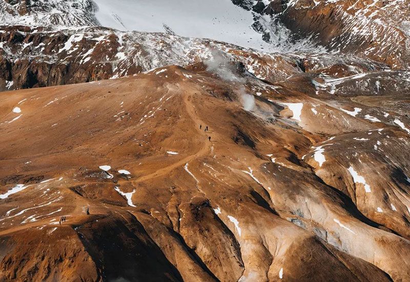 Our adventure begins with a pick-up in Reykjavik around 8 AM. Once the group is assembled, we head out of the city and into Iceland’s remote highland interior. Kerlingarfjöll, our destination, is a volcanic mountain range in central Iceland – a picture-perfect area full of geothermal valleys, glacial rivers, and breathtaking panoramic views.