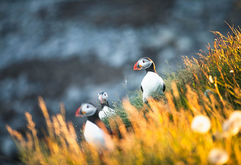 The puffins arrive in mid-April and stay until the end of August. It’s worth noting that around 60% of the world’s puffin population breeds in Iceland – so you’re in the perfect place to witness these lovable seabirds.